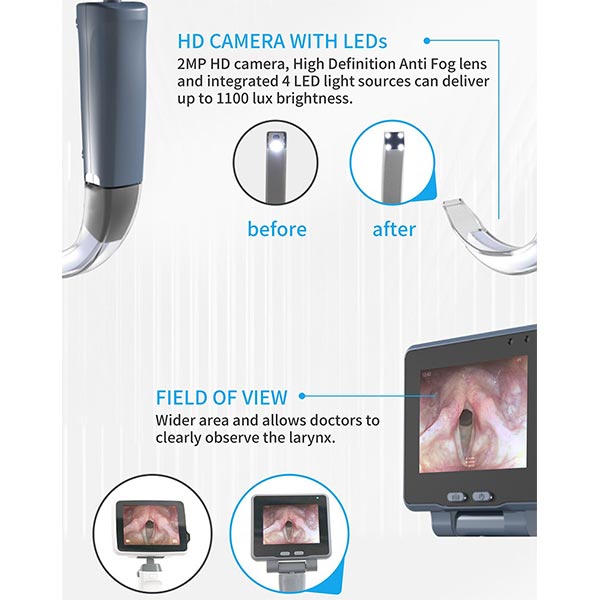5. portátil e de alto desempenho: o videolaringoscópio oferece excelente portabilidade, durabilidade e desempenho estável, todos em um único dispositivo – super confiável para uso diário.