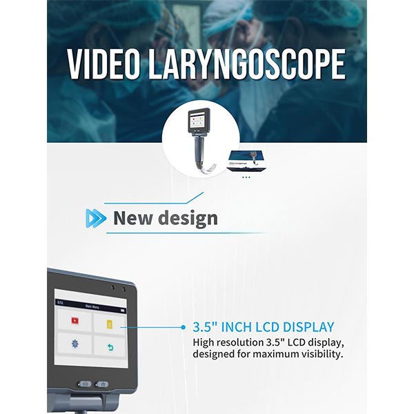 Tela LCD de 1,3,5 polegadas: O videolaringoscópio possui uma tela LCD de alta resolução de 3,5 polegadas, para que as imagens sejam sempre nítidas e constante. Não importa em que ambiente clínico ou de trabalho você esteja, isso lhe dá grande visibilidade, para que você possa observar com precisão e use-o sempre de forma confiável.